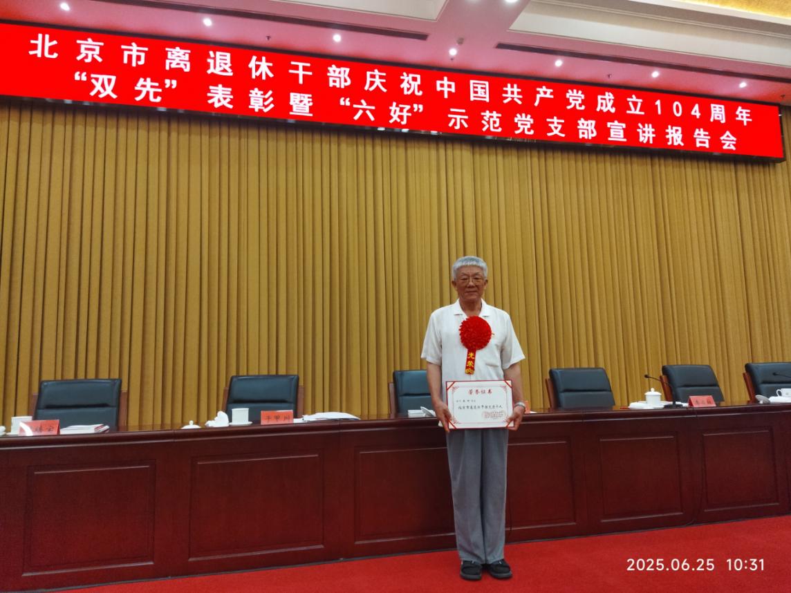 6月24-25日,北京市委组织部、市委老干部局在北京会议中心组织召开北京市离退休干部庆祝中国共产党成立104周年“双先”表彰暨“六好”示范党支部宣讲报告会。本次会议表彰了100个离退休干部先进集体、200名离退休干部先进个人和60个老干部工作先进集体、100名老干部工作先进个人,命名了第二批100个“六好”离退休干部示范党支部并授牌。