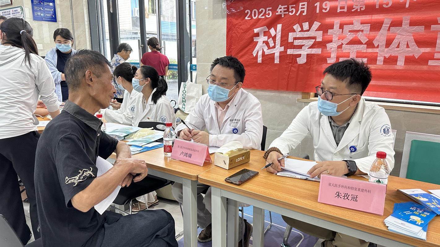 郭恩琪、朱孜冠、卢鸿瑞、范奔医生各展所长,耐心仔细地接诊患者,对于四肢骨关节创伤肿瘤、周围神经病变、肢体淋巴水肿、糖足慢创等疾病给予了专业细致的诊查和建议;金卫群护士长组织梁月桦、杨莉菲、盛萍萍、李晓妍等专科护士开展血糖血压测量、健康宣教、康复管理等活动,获得了就诊村民的广泛好评。