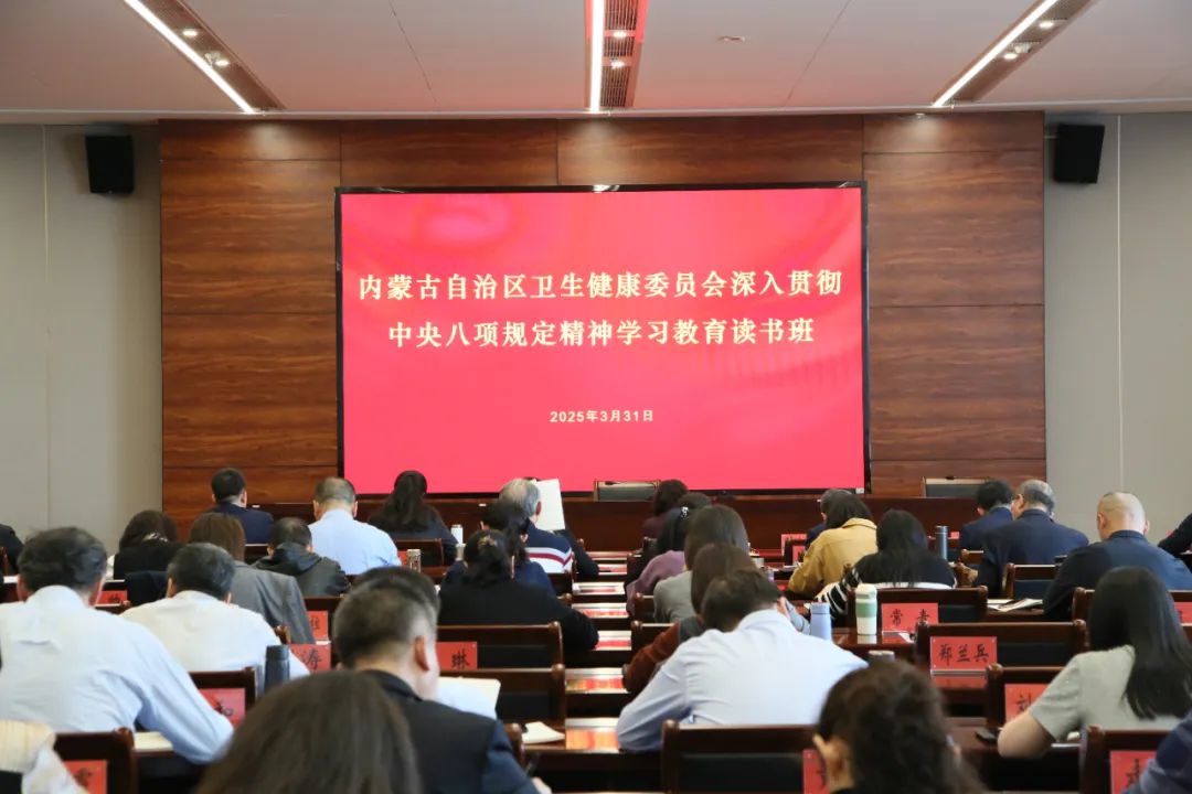 2025年3月31日和4月1日,由自治区卫生健康委主办的“深入贯彻中央八项规定精神学习教育读书班”在中共呼和浩特市委党校举办。自治区卫生健康委领导班子全体成员,自治区疾控局、委机关各处室局、委直属各单位副处级及以上党员干部(含职级)参加读书班。