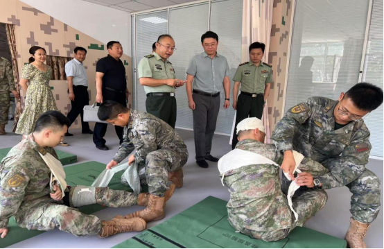 王汉卿副校长一行首先参观了医院特色鲜明的临床技能中心,现场观摩了野战模拟战场环境下的战地急救、伤员转运与包扎等实战化教学演示,对医院将军事医学特色融入临床教学的创新做法给予高度评价。