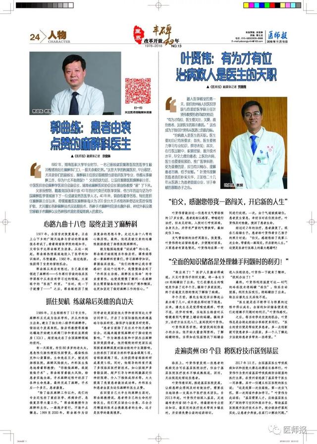 “《医师报》融媒体记者 贾薇薇·叶贤伟:有为才有位 治病救人是医生的天职,[573].医师报,2018-11-15(24)”