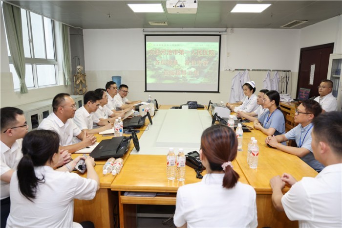 为深化党建与业务融合,以高质量党建引领学科高质量发展,7月14日,河池市第一人民医院到河池市宜州区人民医院,开展了一场主题鲜明、内容丰富的党建与业务深度交流活动。活动聚焦支部建设与专科发展,通过党课互学、学科研讨、临床指导与工作部署,为双方深化合作、共谋发展注入强劲动力。