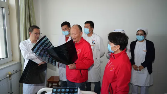 作为志愿服务队队长,孙蔚莉主任医师重点帮扶单位是青海省福利慈善医院,她主动找到院方领导和医务处沟通,在了解到医院对人才培养的迫切渴望后,她迅速牵头,一方面与院内骨干医师建立“结对子”帮扶,进行“手把手”的临床带教;另一方面,根据院方调研后提出的需求清单,她精准“派单”,邀请队内的护理、康复、管理等领域专家,为医院量身定制了一系列专题讲座和继续教育课程。青海省福利慈善医院院长张永国感动地说:“这对我们是最大的收益和收获。”本职工作之外,她利用几乎每一个周末,带领队员们不辞辛劳,为志愿服务“菜单”额外“添菜”。在她的组织下,统筹多学科交流深化东西部协作,带领团队赴湟中区中医院开展疑难病例查房会诊,与当地医生共同分析CT影像、调整治疗方案,让高原群众在家门口就能享受到优质医疗资源。