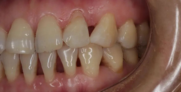 此外,制作不良的修复体比如贴面、牙冠等也可能形成难以清洁的卫生死角,进而增加炎症产生,导致牙龈附着的丧失和牙槽骨吸收。