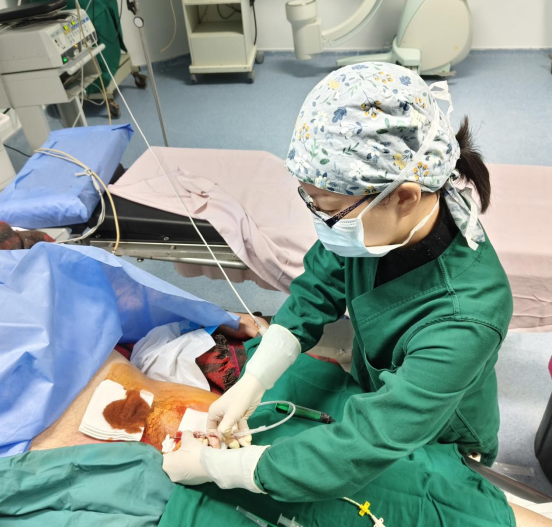 这位即将接受右小腿截肢手术的患者是一位93岁,有高血压、糖尿病病史的患者。这样的高龄患者,身体机能严重衰退,再加上高血压、糖尿病等基础疾病,麻醉风险呈指数级上升。每一种疾病都可能在麻醉过程中引发连锁反应,血压的波动、血糖的失衡,都可能成为威胁患者生命的暗礁。但熊颖芬医生没有丝毫退缩,她认真地拿起患者病历,逐字逐句研读,不放过任何关键信息,反复斟酌患者的身体状况,随后与外科医生严谨地探讨手术细节,每一个环节都经过深思熟虑,每一次交流都细致入微,只为确保麻醉手术安全平稳进行,这是对生命的尊重,也是对职业的坚守。