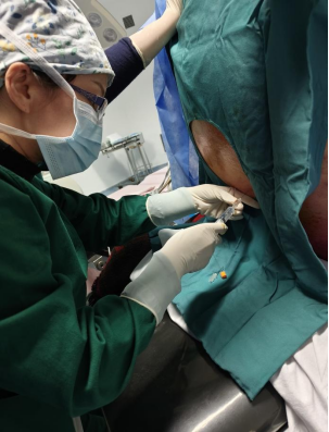 手术室内,熊颖芬医生有条不紊地为患者实施中心静脉(股静脉)穿刺置管术和旁正中入路腰麻。在面对老年患者可能存在韧带硬化的情况,选择旁正中入路腰麻需要精准的定位和恰到好处的力度。但熊颖芬医生凭借着精湛的技术,操作精准、动作流畅,手法娴熟,赢得了手术医生和麻醉技师的认可,一句 “Très bien(非常棒)!”是对他专业能力的肯定。无影灯亮起,手术正式开始,她的目光始终紧盯着监护仪,时刻关注着心电图、心率、血压、血氧饱和度等各项生命体征数据,如同在解一道关乎生死的谜题,全神贯注,沉稳冷静,毫不懈怠。