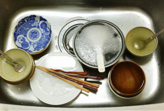 很多人习惯将用过的碗筷直接堆叠在一起,等一段时间后再清洗。