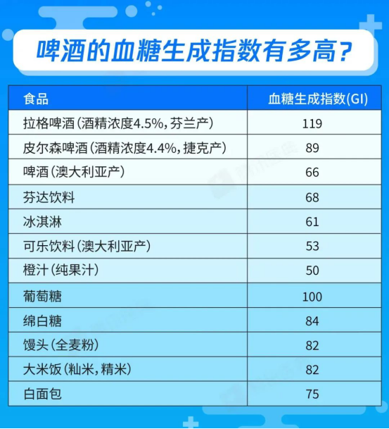 啤酒称为“液体面包”,正是由于其对血糖的影响很大。